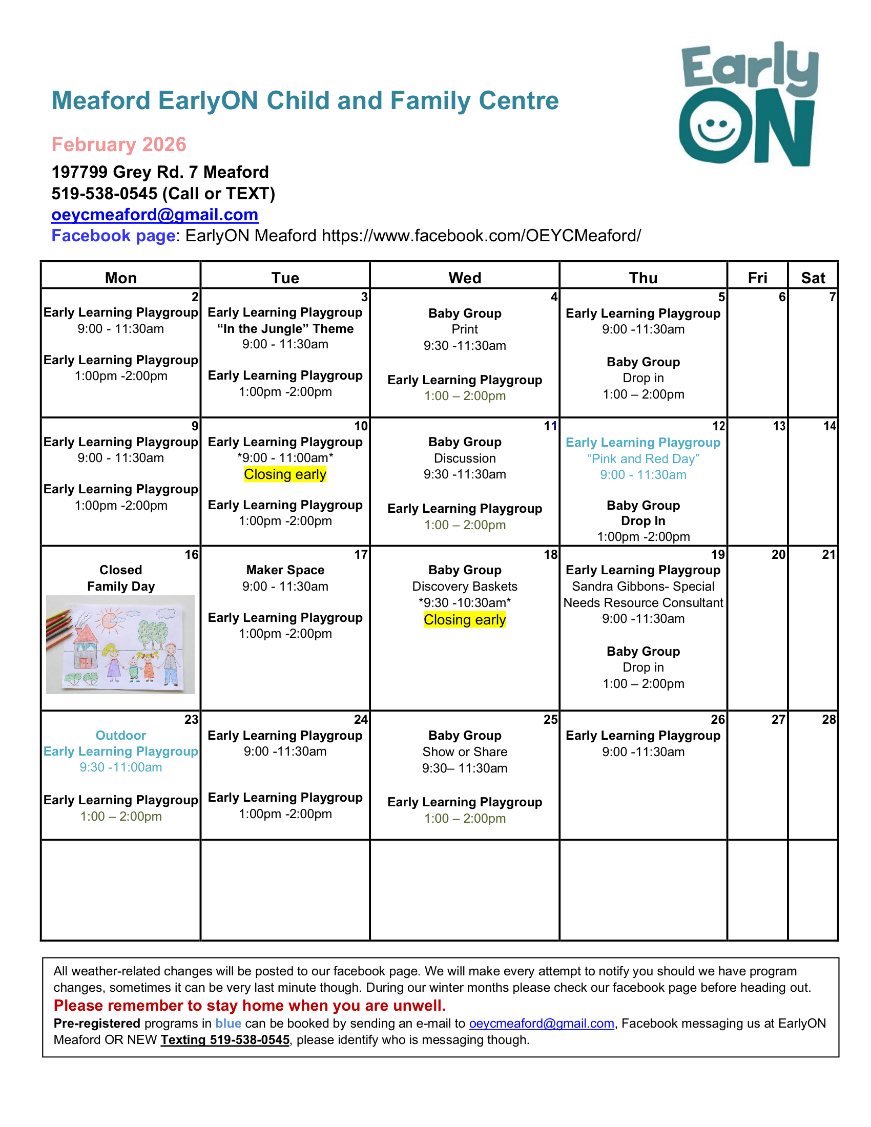 Meaford EarlyON Calendar
